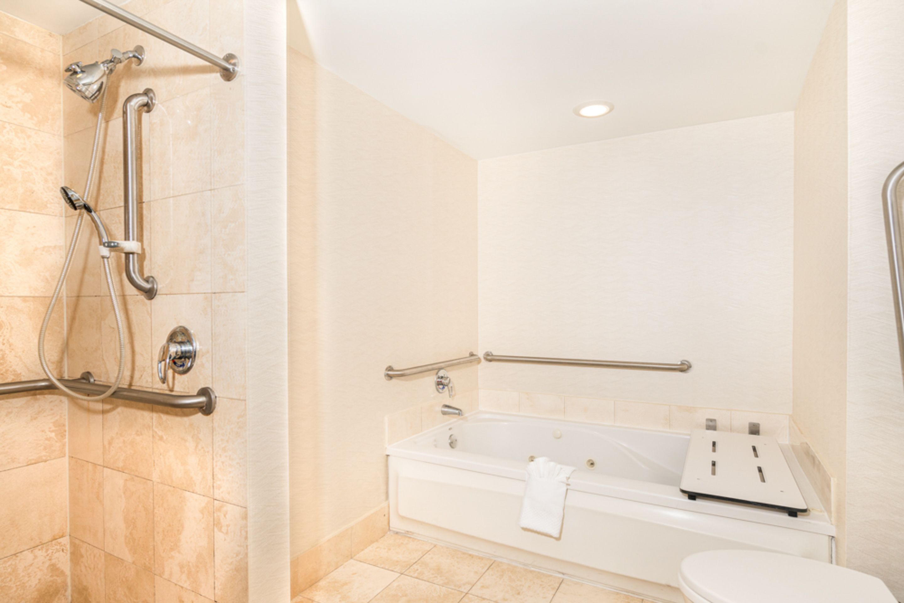 Check with the Hilton Garden Inn Durham University Medical Center. MobilityHearing Accessible Room King Oceanfront with Roll-in Shower This beautiful mobility accessible standard room features one king-sized bed a roll-in shower and. The only two minor inconveniences in the bathroom were the shower seat did not fold up and there is.