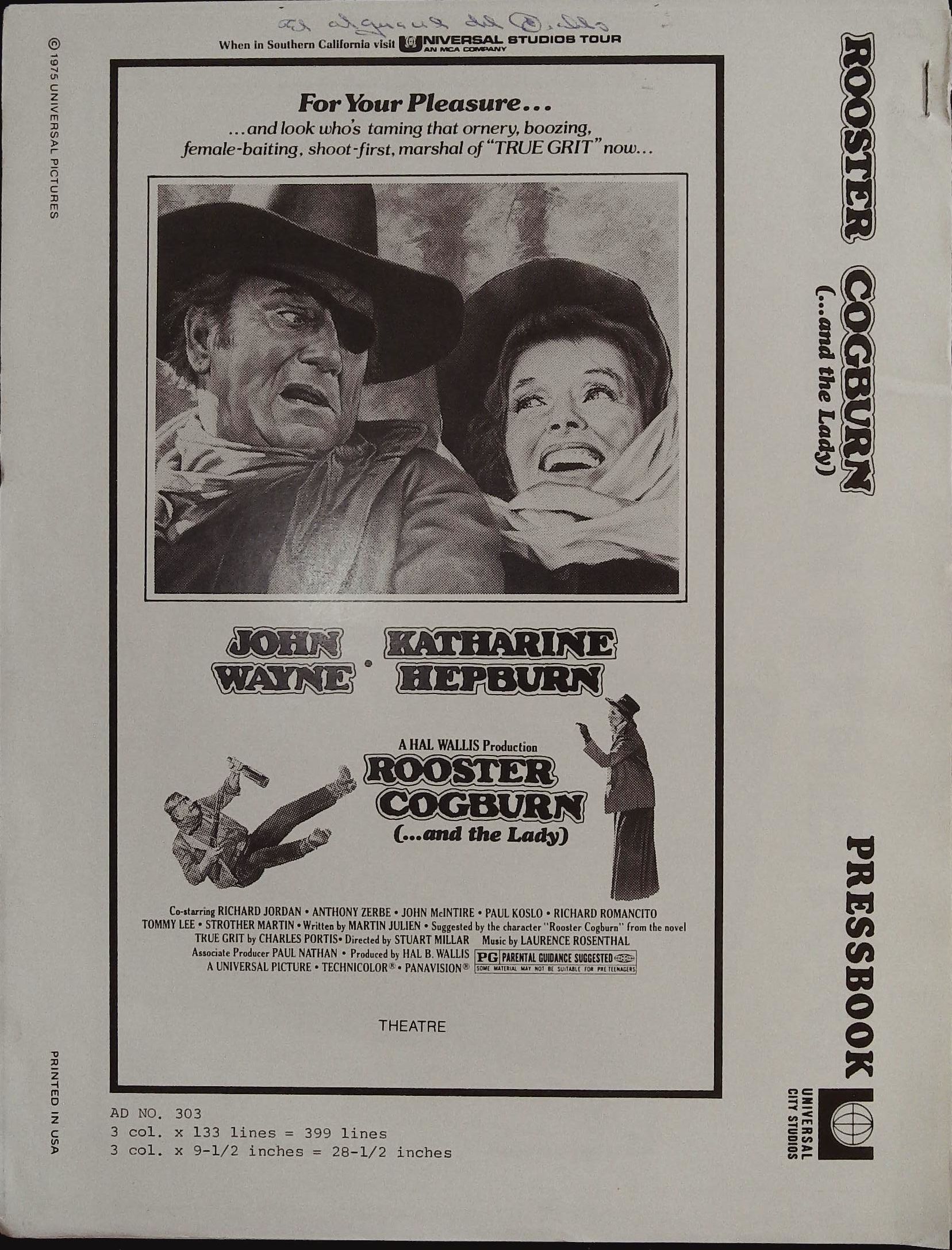 Rooster Cogburn Pressbook 1975 John Wayne Katharine Hepburn By Anthony Zerbe Katharine Hepburn Paperback 1975 From Acorn Books Sku 026847